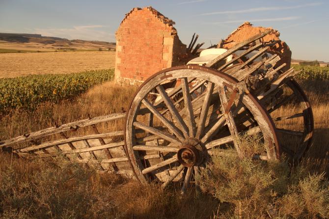 Carro y caseta destartalados,