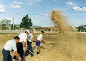 Aprovechando el cierzo para separar claramente el grano de la paja a golpe manual de bieldo.