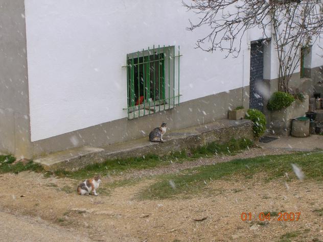 Animales domesticos. Gatos y nieve,