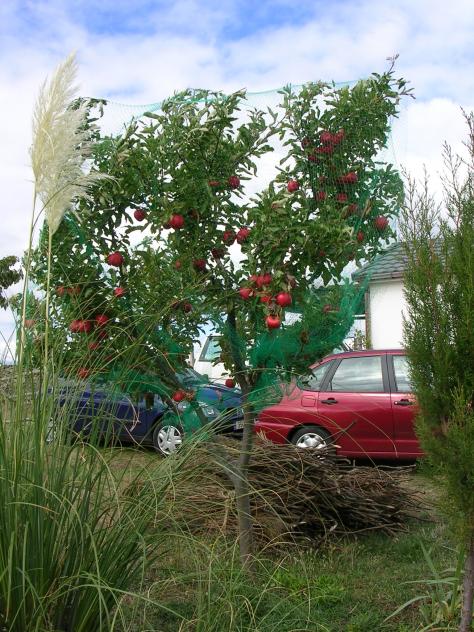 Manzanas protegidas por red. Este metodo evita que los pajaros puedan entran a comerlas.