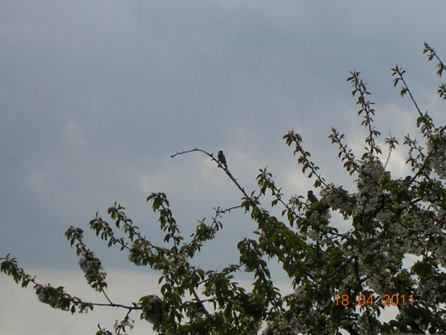 Aves. Pardal en el árbol,