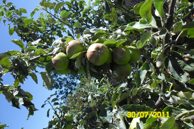 Árboles frutales. Rama con manzanas,