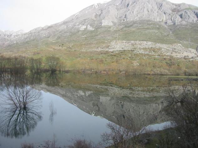 Pico de Arriones reflejado en el agua del pantano, CALDAS DE LUNA