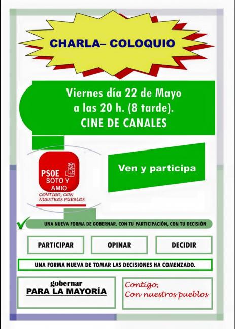 cine una charla coloquio, del PSOE. Es el única charla que se ha hecho. Se puede preguntar, dialogar, opinar sobre su programa, o puntos de ese programa que son discutibles.