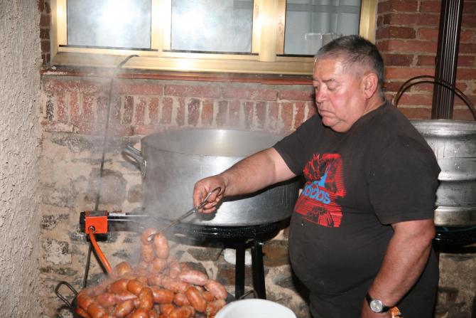 Miguel a lo suyo, cocinando, que buena pinta tienen los choricines,... quien los pillara,......