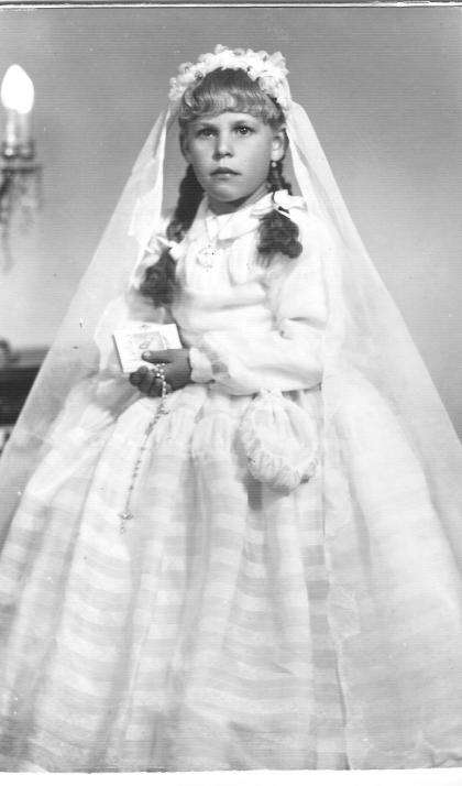 Precioso el vestido, élla parece que está enfadada,......... Y esta otra, Carmina con otro vestido hecho por su madre y precioso que bonitos los vestidos de antes. Carmina que guapa y Miguel como estaria de comunión? Y el mes de las comuniones. Carmina bonito bestido, pareces una princesa