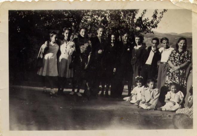 por la izquierda: Lolita (tio Vega), Amabilia, La Pepa, tio Jamin, tia Celia, Juan y Chelo (mis padres), tio Logio, Pepito Vega, y Angelona