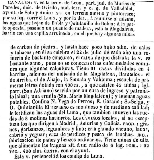 diccionario geográfico de Madoz, CANALES