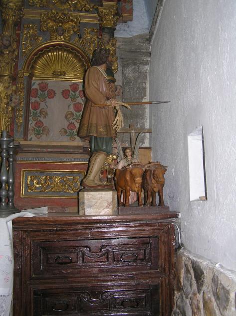 Pues si es San Isidro con su pareja de bueyes,...... Es verdad que hoy es San Isidro! Nunca voy a olvidar una procesión de hace ya unos cuantos años cuando en plena procesión (y creo Pilina que muy cerca de tú casa) el tornillo que sujeta la imagen a las andas se partió y a poco no se nos esmorra el bueno de San Isidro. Solución? Subir a alguien que no pesara mucho a sujetar al santo y le tocó a nuestro Ángel Codines que a partir de entonces pasó a ser Isidrín. Un abrazo para él San Isidro contemplando el paisaje que ve desde la ventana y sin poder salir a bendecir los campos buen descanso Carmina y a disfrutar luego del buen tiempo Buen descanso Carmina