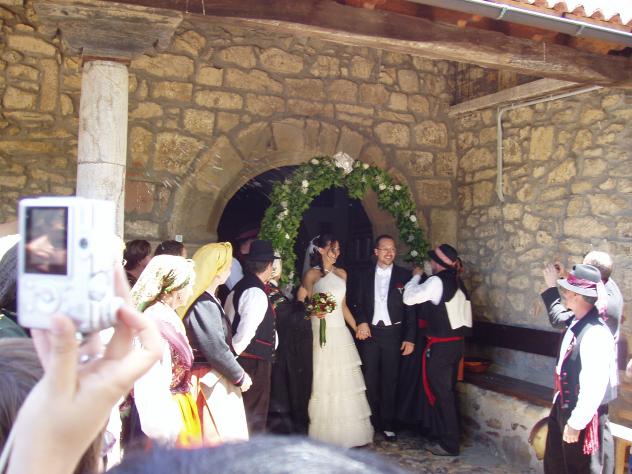 Salen los recién casados,