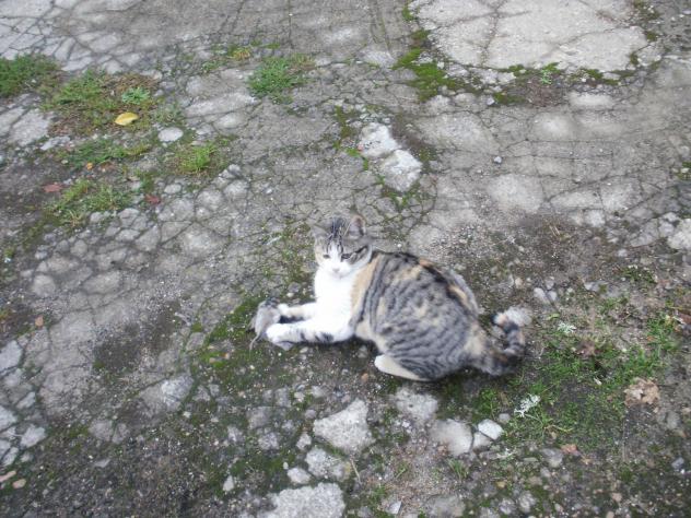 Buenos dias. Ya se le vé al gato la cara de contento con su caza,......