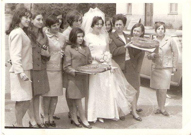 Grupo de mozas de Canales acompañando a la novia.