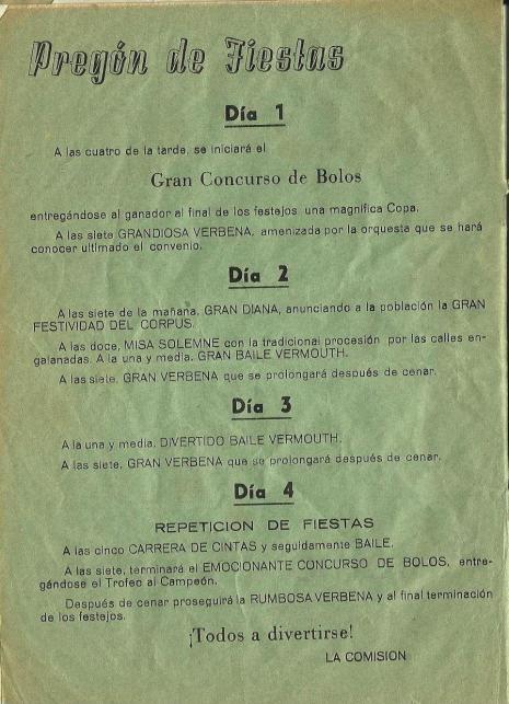 Este programa es de tiempos pasados cuando la fiesta del Corpus se festejaba,.... ya ni fiestas ni nada de nada ya ni se debe de ir a misa los domingos,.... es increible la vuelta que le estan dando al mundo,.....