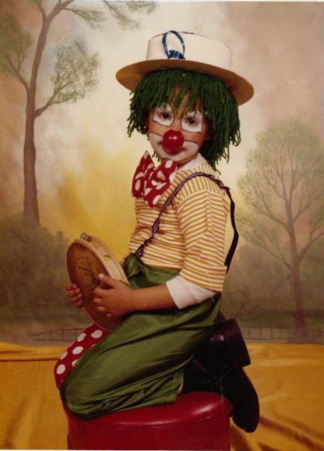 El disfraz de payaso, precioso, eres una artista,....
