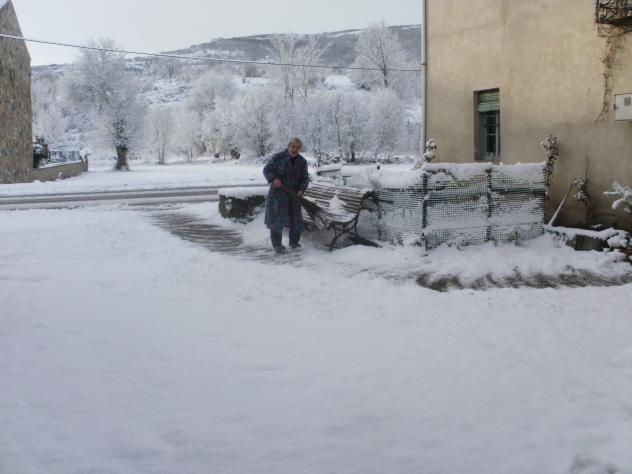 Pues tira de paraguas.... Pues aquí había hecho buen día pero ahora está cayendo un diluvio... y yo me tengo que ir a currar Teresa bien armada si señor.... bata, madreñes y escobas! ¿Os habeis fijado con qué utensilio quita la nieve Teresa,? nada de palas. Lo mejor escobas del monte para barrer dicha nieve. A las buenas tardes, querido Calecho.