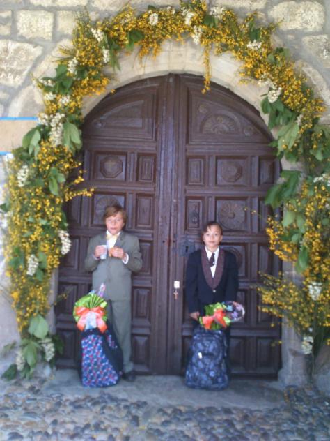 ¡Gracias Calecho por este detalle que para ellos, fue muy importante... los niños, ese dia les hicimos protagonistas, y ellos estaban sorprendidos por tantas cosas que vivieron... que casi no se lo creían.! Mi enhorabuena a los chavales. Tambien al Calecho por el detalle de hacerles un regalito en el dia de su primera comunión. Pilar. Aqui los 2 mozos de la comunión con el obsequio que se les entregó de parte del Calecho. Una mochila con material escolar.