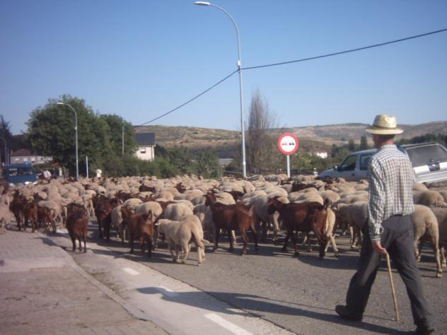 El rebaño a su paso por La Madalena, tienen preferencia son los amos de la carretera Buenas noches. Como es hora de dormir lo mejor a contar ovejas,... ya sabeis