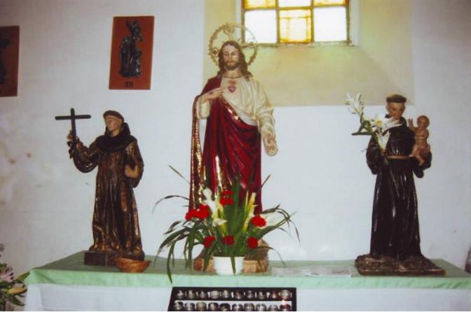 San Bernardino (patrón de Castropodame, que se celebre el 20 de mayo) el Sagrado corazón de Jesus y San Antonio. Jesus en el centro abajo de la ventana por el brillo del sol.