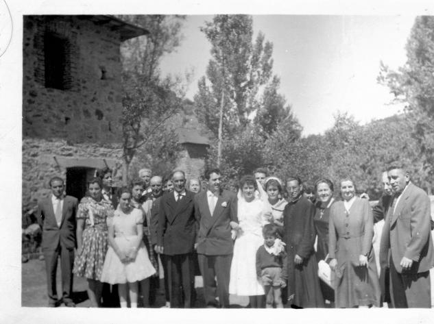Pues si, es de mi boda, la hija del molinero de Aguasmestas, yo misma, en agosto hace 60 años,..... ya son años,...... Ya te digo, nada menos que 60 años hará el 19 de agosto próximo,... pocos vivos quedan de los que hay en la foto, los novios,.. si,... por suerte,..... Otra más de mi boda, los de Pueblos de España no paran de poner al margen mis fotos,..... fué en agosto del 1959,..... mira que soy vieja,..... Pues si, esa es mi boda,... poquita gente, la familia mas cercana, a las diez de la mañana y a la salida de misa un chocolate con bizcocho para todos,... esa ha sido mi boda, nos fuimos de viaje de novios a continuación, la foto está hecha en Aguasmestas y de ésto ya hizo 56 años el 19 de agosto del año pasado,..... No, una aclaración,... se casó la hija del molinero,... parecido pero no es lo mismo,.. y esa que se casó soy yo misma,... ¿vale?