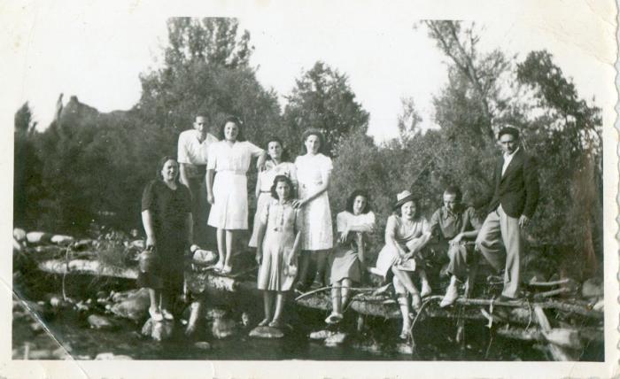 Antes sólo había un manantial al que llamábamos "La Fuente" muy cerca de donde está hecha la foto. Era donde acudíamos a llenar nuestros botijos con el citado tanque. Mi madre Socorro es la del sombrero. Pandilla de El Castillo (cerca de la casa de La Molinera) sentada en el zancao que desvía el agua hacia "El Pradón".