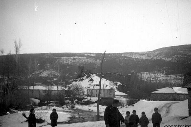 El cura Don Ángel y niños en la nieve,
