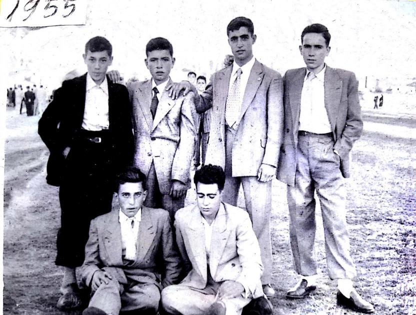 Estos chicos son, parte superior: Toñín (el barbis), Luis (Visito), Felipe, y Doro (el de Máxima). Sentados: Teo y Constancio.