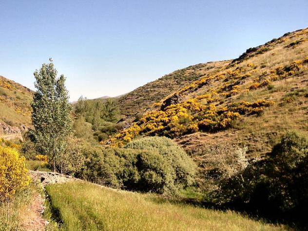 Arbolado de ribera en el curso del arroyo Valtaín o valduín, "Prao" Franco y a la derecha "Las canalizas"