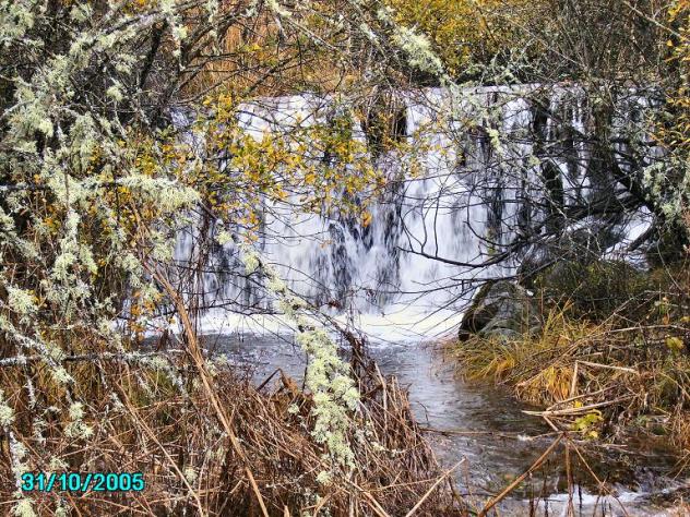 Para retener el cauce del rio Valtaín o "Valduín" se construyó este muro de piedra y así canalizar desde éste lugar el agua a la turbina de la fábrica de luz.