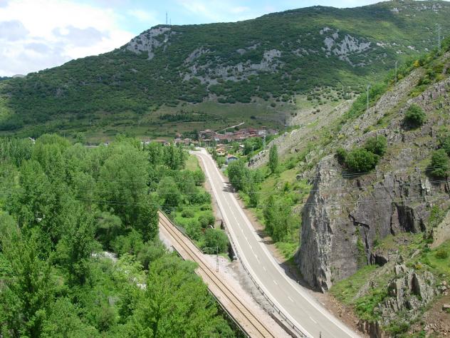 Vía del tren y carretera Nacional,