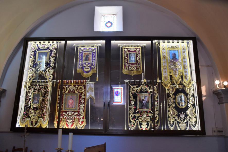 Estandartes de Semana Santa en la Capilla de Nuestra Señora de las Angustias y de la Soledad,