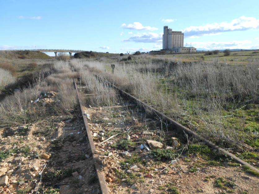desde su cierre a mediados de la década de los 80 del siglo pasado, imagen tomada cerca de la zona de la Salgada. Al fondo de la imagen se puede apreciar un antiguo silo de cereales.