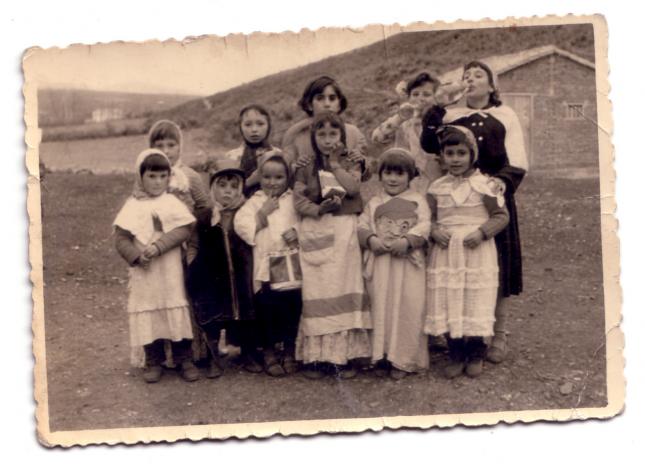 Fiesta de carnaval en La Magdalena donde estamos mi hermana (Carmen) en la fila de abajo la tercera a la izq. y a su lado, la mas pequeña, soy yo.