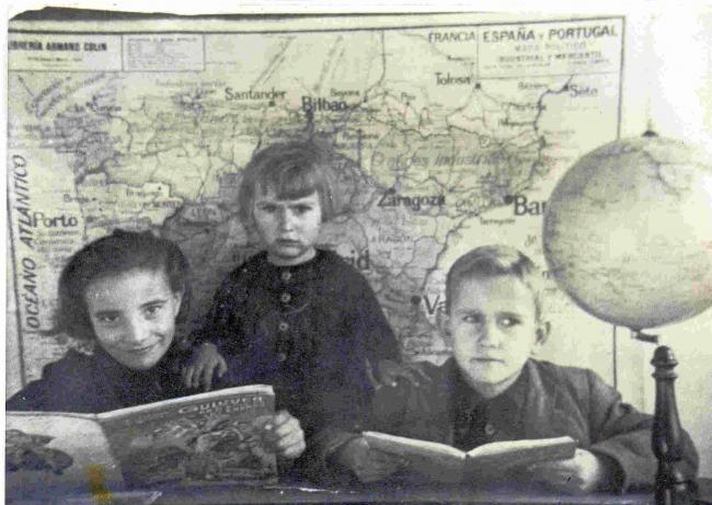 La foto que tenemos todos de la escuela con el mapa de España por detras,..... En esta esta Cori mi vecina con su hermana y su hermano, el hermano vive en Alemania la hermana en Francia. De los tres solo vive Cori en La Magdalena, su hermano en Alemania y su hermana en Francia, un abrazo queridos vecinos. La del centro, Cori, con su hermana y su hermano.
