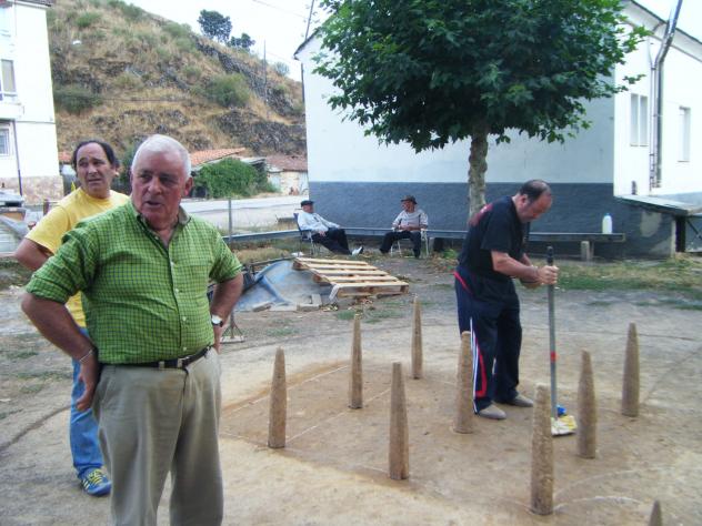 Si se la tienes guardada y no la encuentras,... ¿de que te vale? El jefe de los bolos,... ahí se pasan el verano lastardes de cada dia jugando a los bolos,..... Lo tienen muy cuidado, cada dia al terminar de jugar lo riegan y luego lo tapan con una lona para que no se seque demasiado,...... les interesa tenerlo bien, son éllos los que lo disfrutan,.... pues que cuidan el castro muy bien eso es ta bien para que las bolas rueden bien... ¿Donde anda mi tocaya, Pilarina? Esta foto para que se la enseñe al de La Velilla a ver si le trae algún recuerdo del verano.