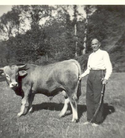 Clodoveo, mi padre allá en Aguasmestas con uno de los muchos toros que tuvo,... le gustaban los toros y los caballos,...... Mi padre, Clodoveo, en su salsa, los toros, tambien los caballos, recuerdo de pequeña verle domar los potros, a mi me gustan mucho los caballos----de herencia le viene al galgo---dice el refrán.