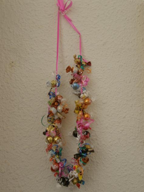 esto me rrecuerda cuando mis hijos heran pequeños y me esperaban para ponerme la cuelga y la gracia estaba en que yo no me diera cuenta que momentos mas felizesy ya no buelben un beso... Gracias, Noemí, en su nombre y tambien de mi parte. Claro que puedes coger una golosina de la cuelga, para éso son,... que pena que sólo sea virtualmente.