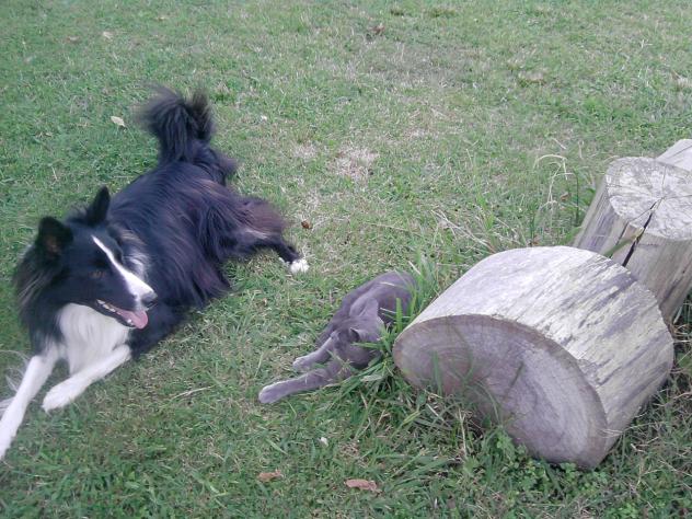 Buenos dias,... Para que luego se diga eso de Se llevan como el perro y el gato,...... Seguro que desde que tiene compañia juega menos con el gato,......, para que se vea lo del dicho ese de, se llevan como el perro y el gato,.... Pilar, te cuento que hace mucho tiempo que Rayo, nuestro gato vecino, no aparece... hace tiempo le pregunté a su dueña, la vecina de atrás, y sí lo tienen, pero es una mascota de adentro.