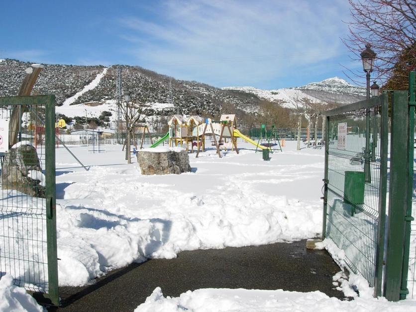 Parque La Huerga entrada con nieve,