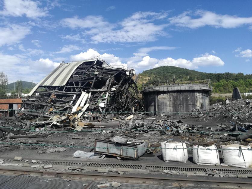 A la derecha de la imagen se puede apreciar todavía en píe el tanque 14.