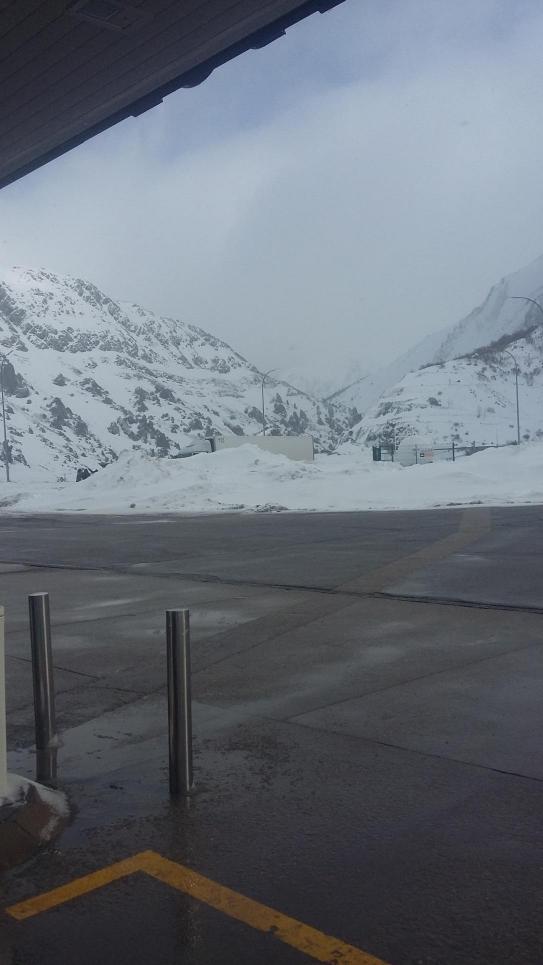 Blanca y radiante se ve la montaña cubierta de nieve,.... Como llegue ahi esta porqueria que esta llegando del desierto de Africa, va dejar la nieve de color del chocolate,......