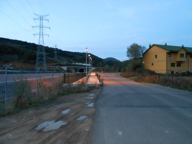 . En la imagen se puede apreciar las primeras luces alumbrando la rampa que se introduce en el paso subterraneo, bajo las futuras