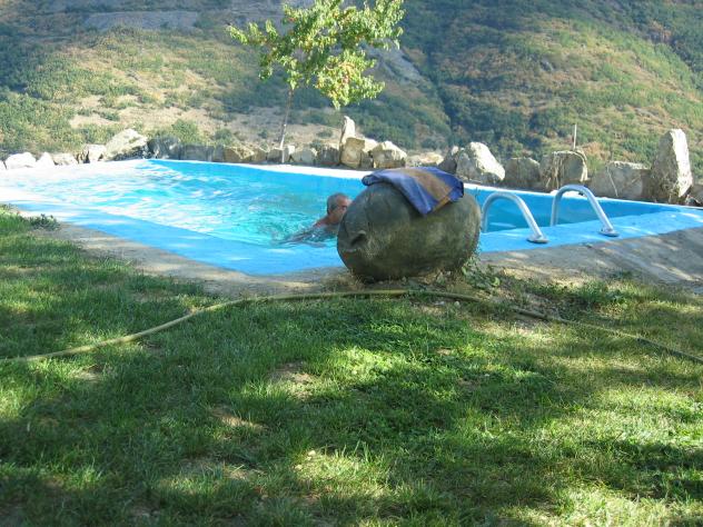 en la piscina,