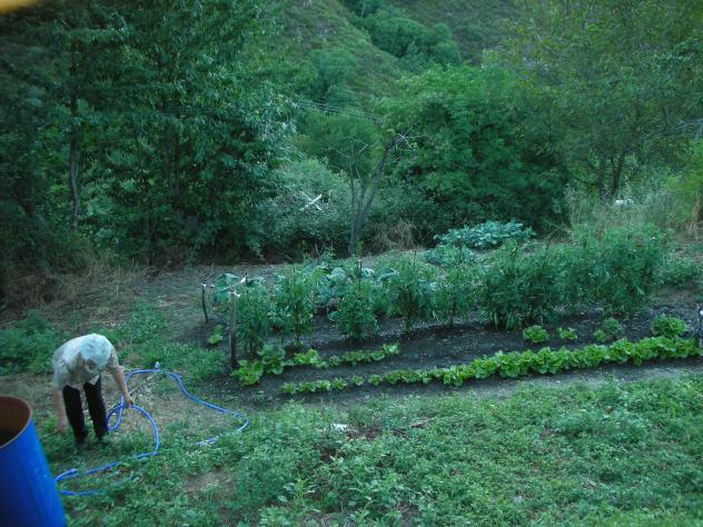 regando el huerto,