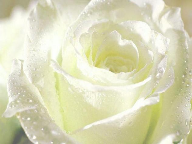 blanca como el azahar con gotitas de agua,