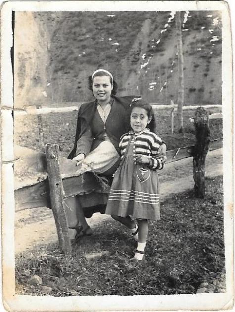 Úrsula y Nani en el camino del molino (foto antigua),