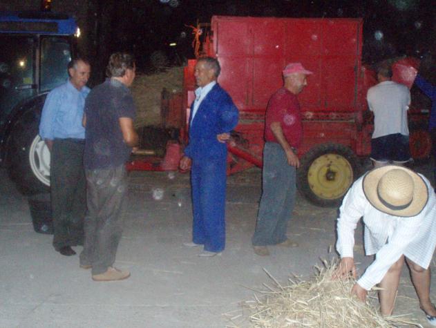 Roque, el domingo, se hizo la malla del centeno, que se habia segado el 26 de julio. Aqui se está recogiendo la aira y la malladora que este año fue en la