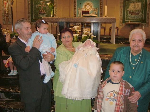 En el bautizo de mi nieta y con mis nietos,