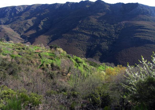 Liñares, Tallos y, de fondo, las peñas (incluye O Matón) hasta la orilla do Chao.