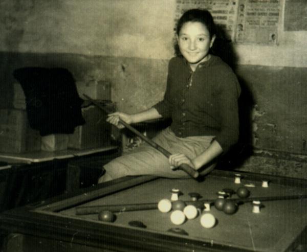 Emma Fernández jugando al billar en el bar Pegaso.