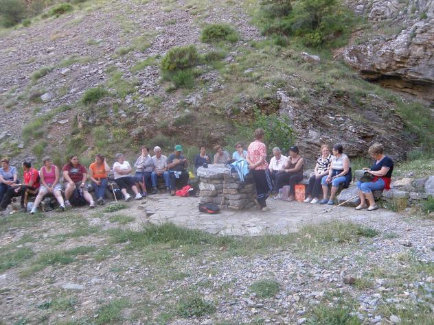 Descansando de la caminata mietras llega la hora de la misa de